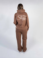 Versatilidad, estilo y calidad premium en una sola prenda. Este pantalón de corte recto está confeccionado en algodón pima de alto gramaje, color cafe, lo que le da una textura suave, estructura firme y abrigo...